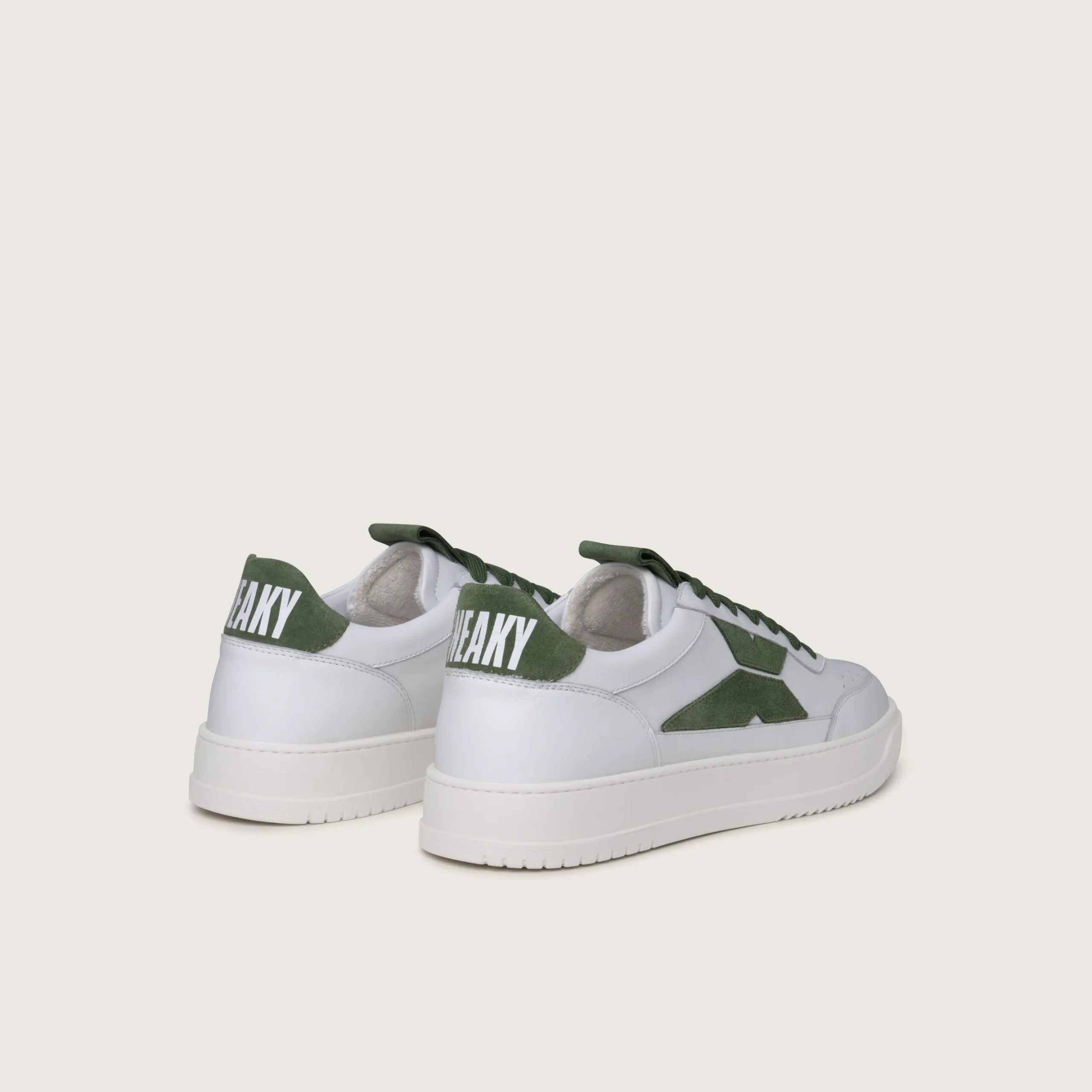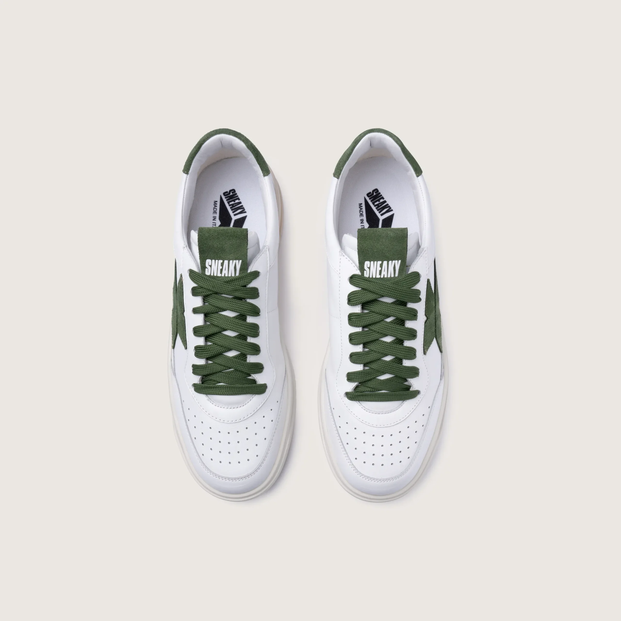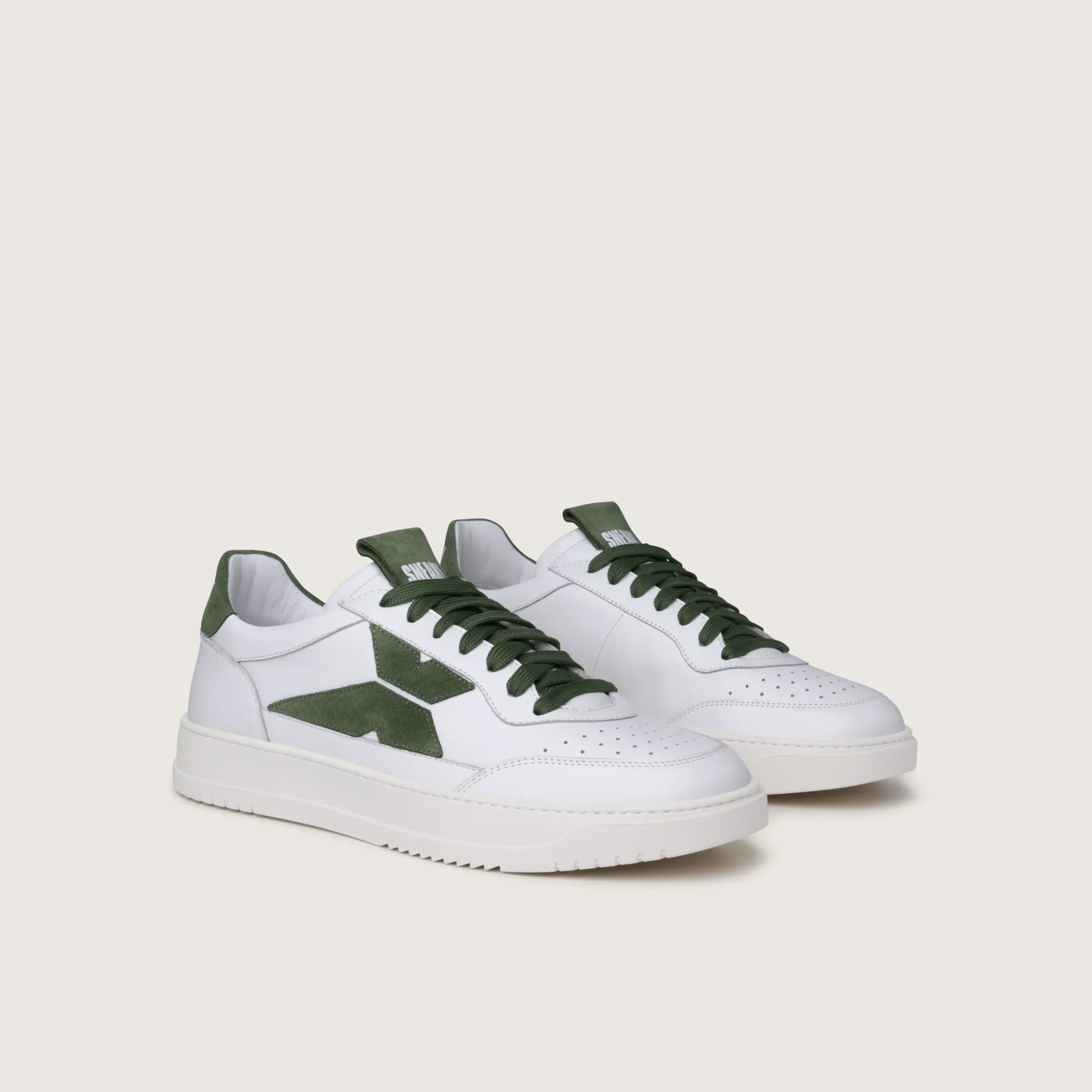 Laced up sneaker in calfskin leather, contrast logo, zebra pony hair backtab and tongue.
