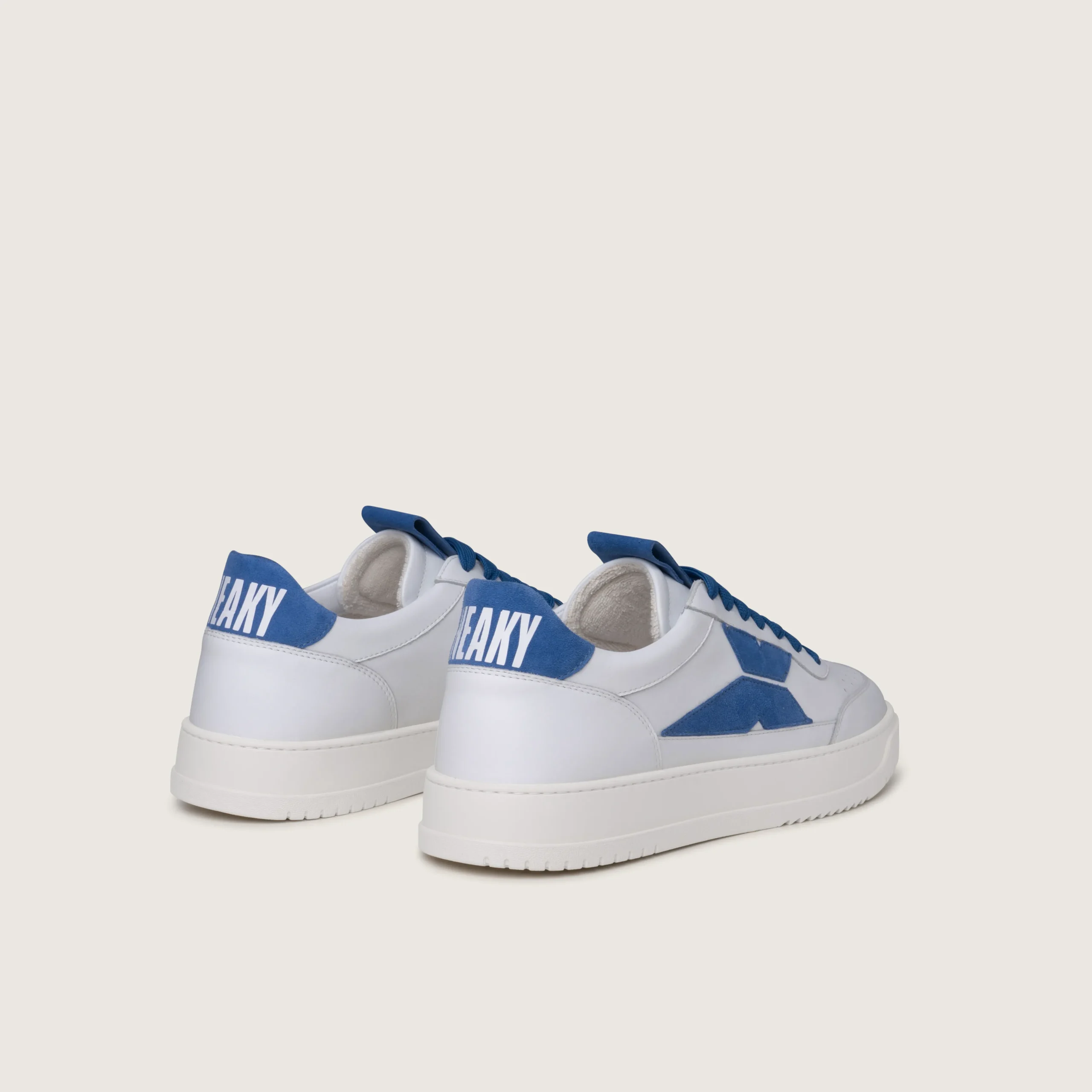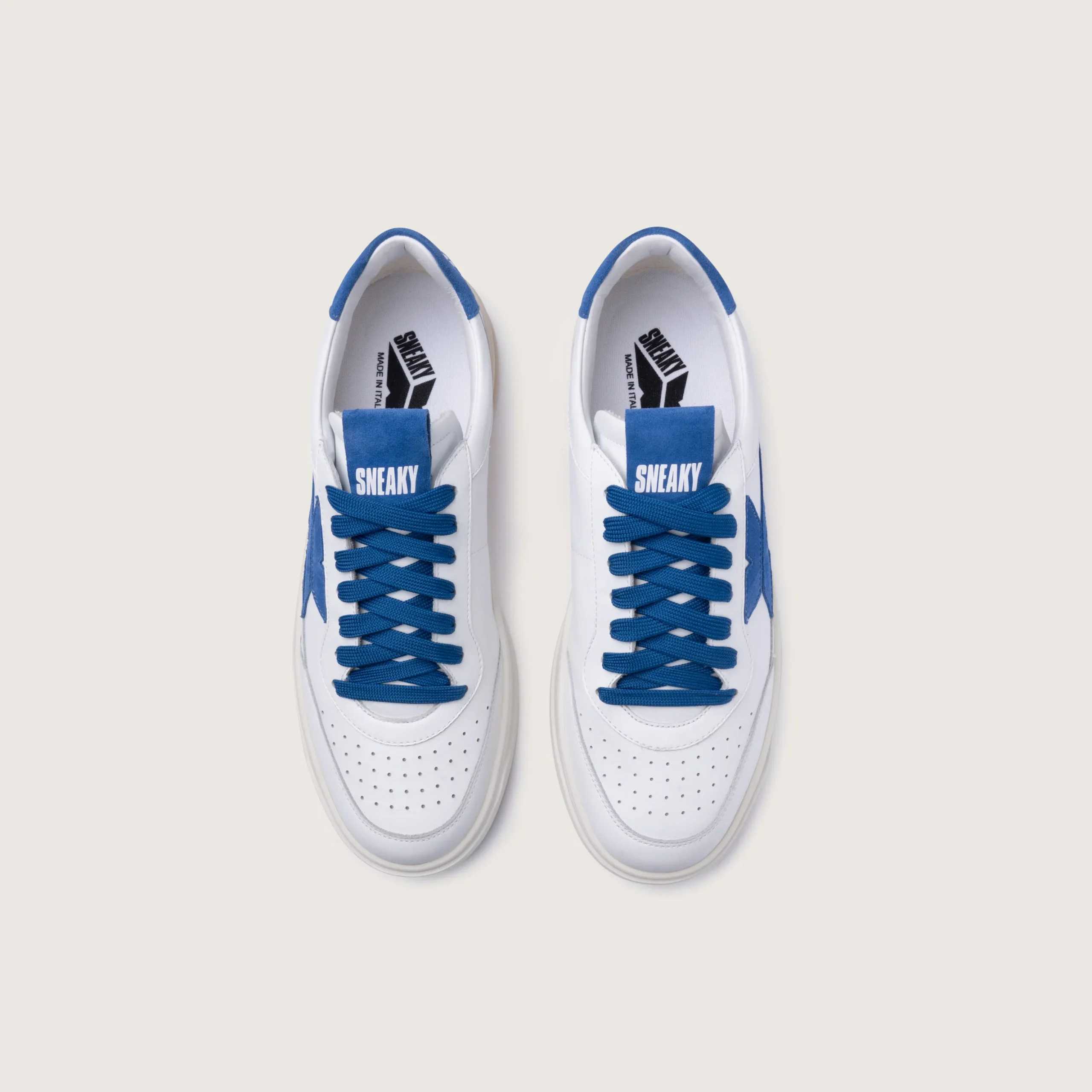 Calfskin leather lace-up sneaker, side logo and contrasting heel